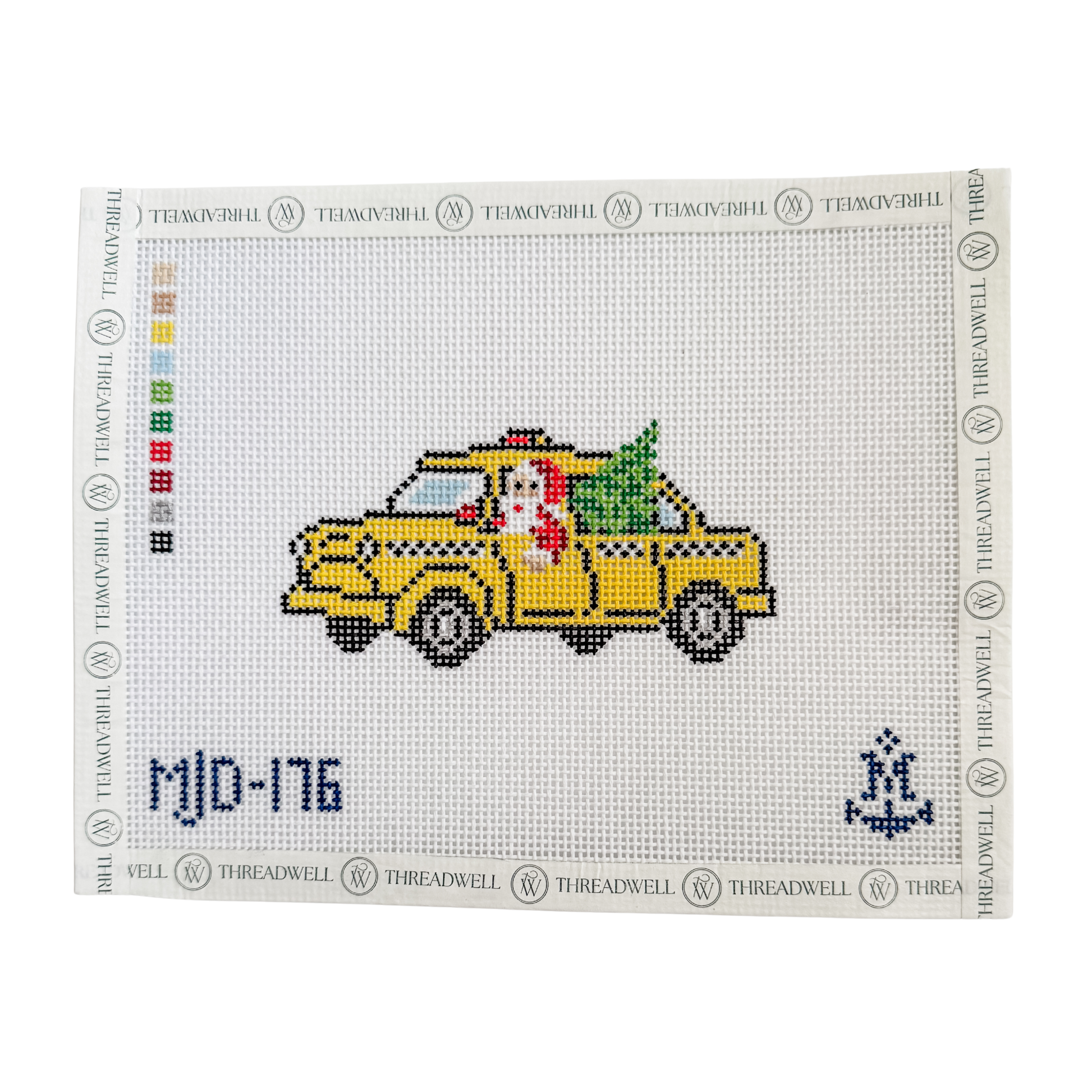 This cutie Santa in a cab with a Christmas tree is sure to get you in the holiday spirit!