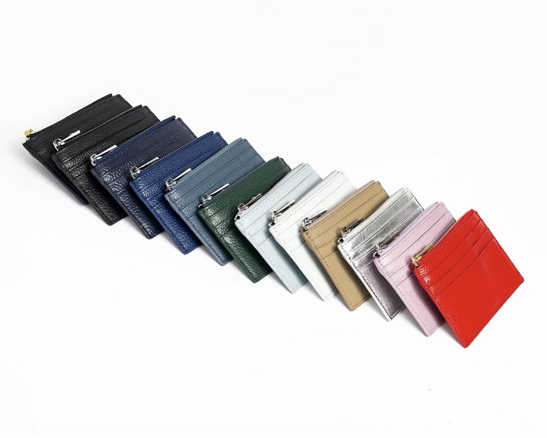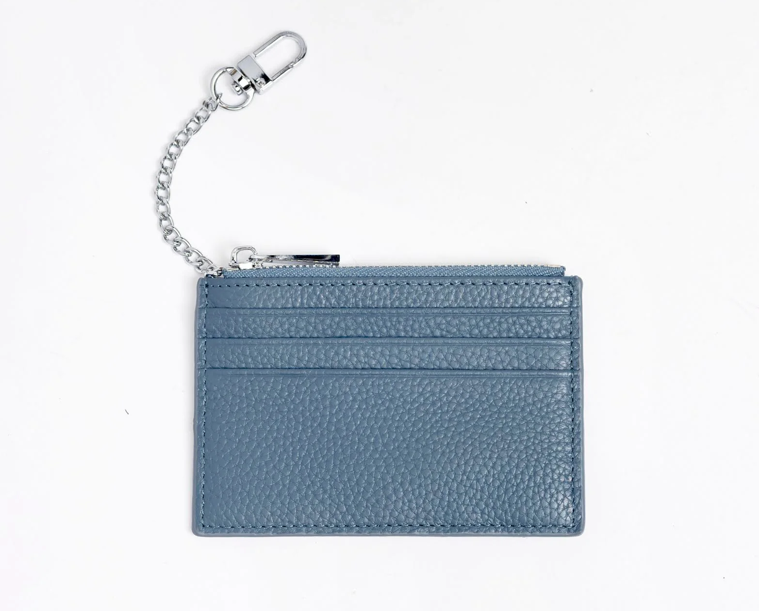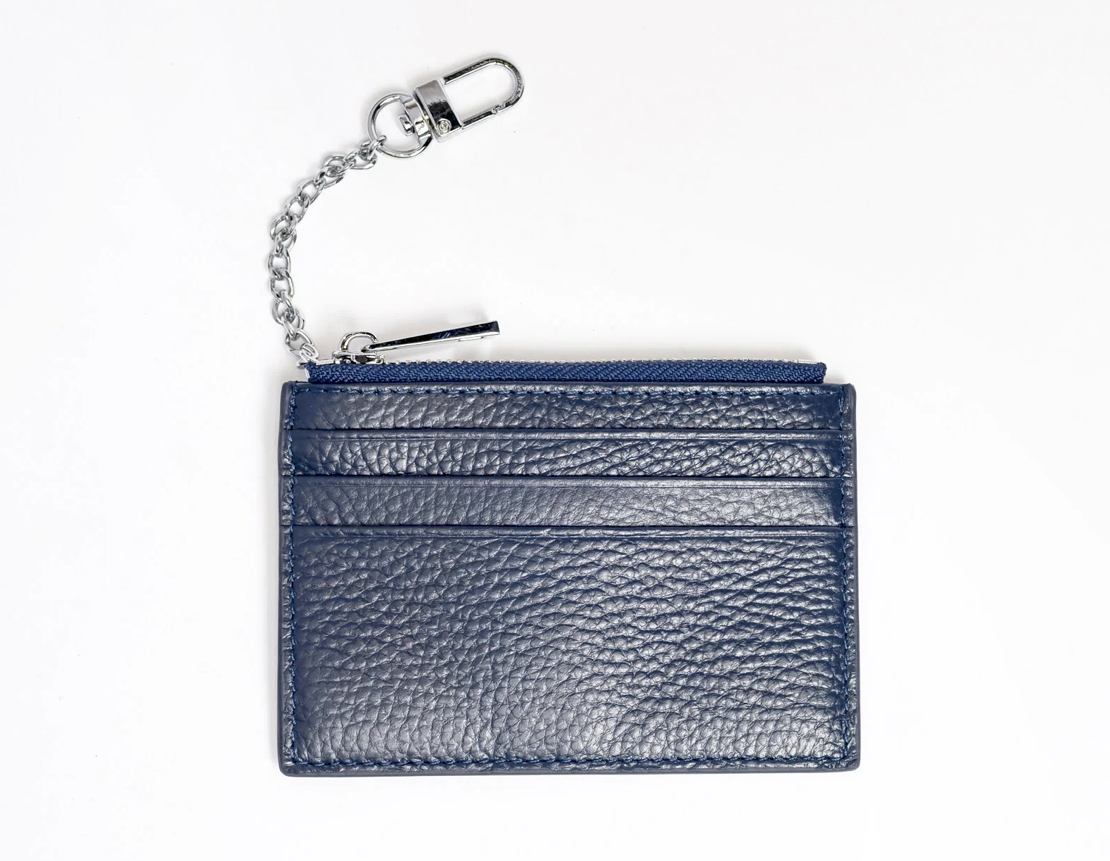 Crafted out of genuine pebbled leather, these everyday wallets have 3 card slots on the back, a zippered pouch (that can hold cards), and a 2" x 3" window on the front for your canvas.